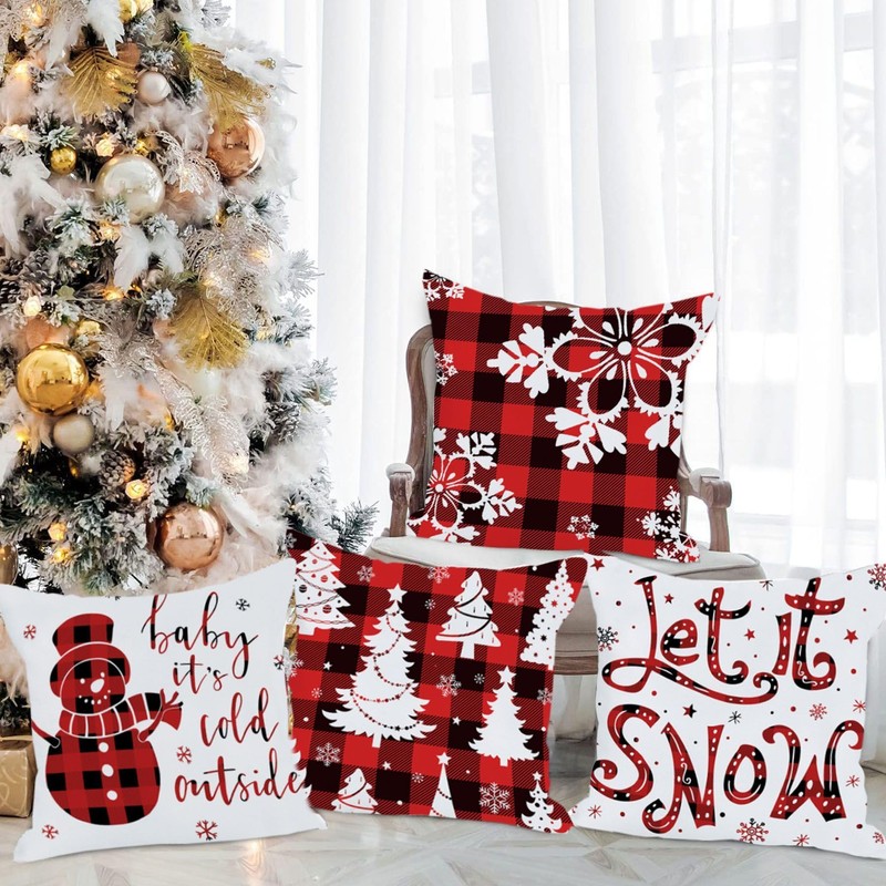 EZVING Buffalo Plaid 20x20 Throw Pillow Cover Set of 4 Baby It's Cold Outside...