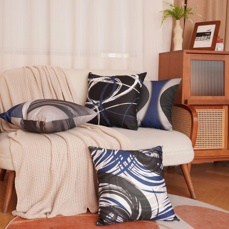 Product:4 Pack Modern Geometric Dark Blue Black Throw Pillow Cover