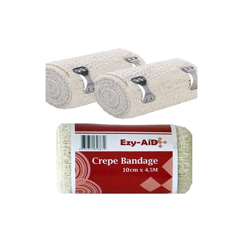 Product description12pk Ezy-Aid Crepe Bandage 10cm x 4.5m - Premium QualityDirectionsClean the wound, wrap the bandage around the affected area, secure with the provided clamps, ensure it's not too tight. The bandage can be washed in warm soapy water and reused.