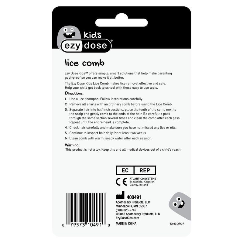 Ezy Dose Kids Lice and Eggs Comb | Hair Care for Baby, Toddler, Adult | Stainless Steel Pin Teeth