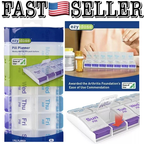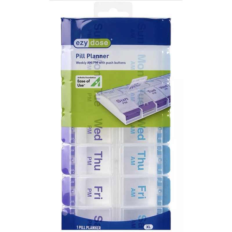 Ezy Dose Weekly Pill Planner Organizer AM/PM Push Button 7 Day Pill Box Case XL - NEW!