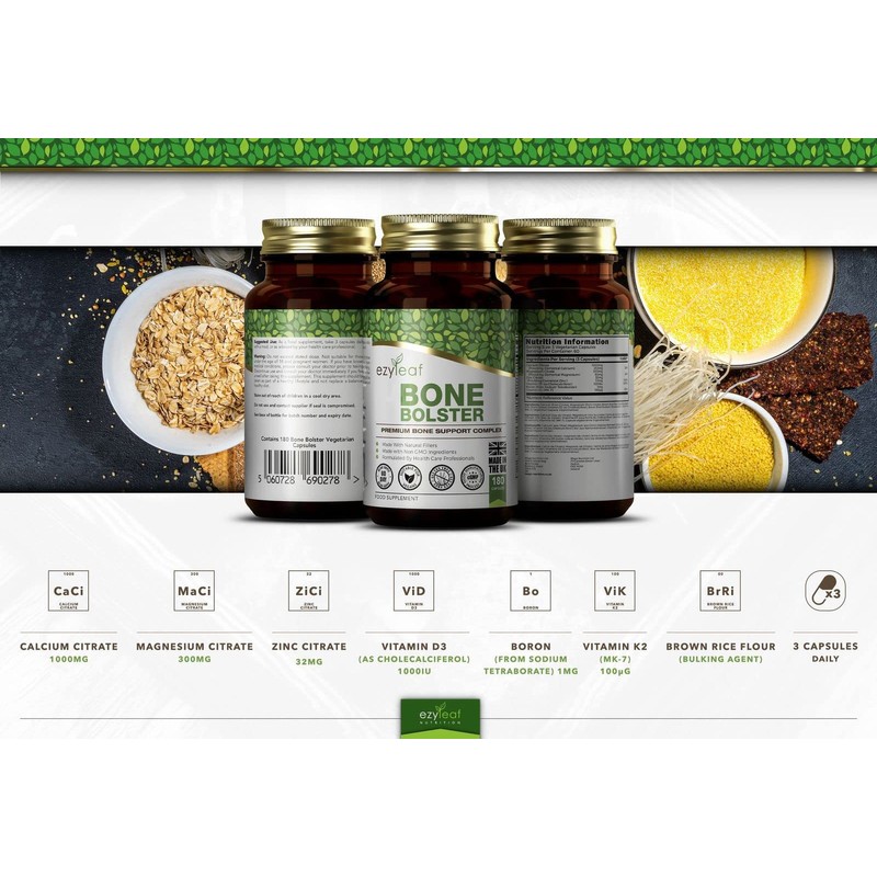 - BONE BOLSTER SUPPLEMENT - Full of vitamins and minerals including calcium, magnesium, zinc, boron and vitamins D3 & K2. We have included Vitamin D as it aids with the absorption of calcium, its not always easy to get adequate amounts of vitamin D, due to lack of sunlight in the winter months and only being found in limited food sources. Boron has also been added and as it is not regularly found in multivitamin supplements, taking this supplement will help to increase your intake.