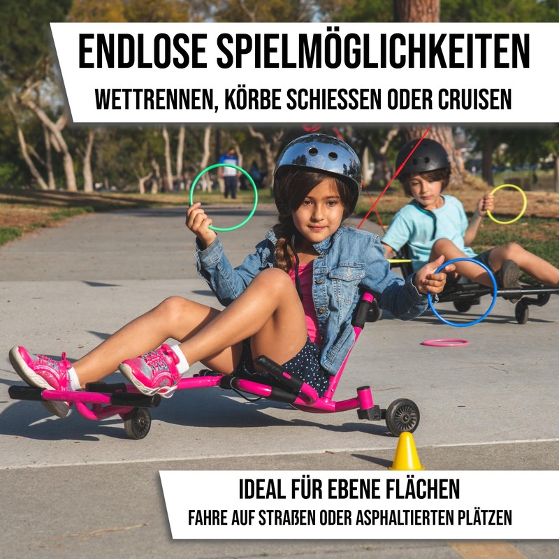 - TILLYWIG TOY AWARD WINNER: Ezyroller presents the Drifter X, which offers more exciting rides for bigger kids & adults. The unique back wheel design lets riders smoothly drift on corners.