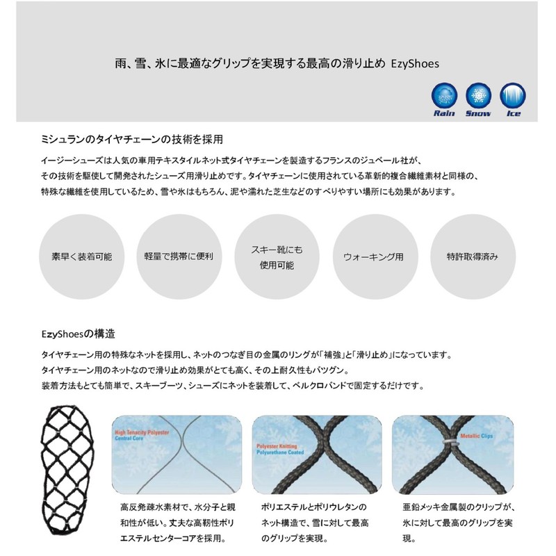 - Lightweight and efficient: the metal clips provide grip on ice.