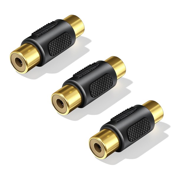 EZYUMM 3-Pack Gold Plated RCA Female to Female Coupler, Audio Video Connector for Phono, Speaker, RCA Cables & Amplifiers