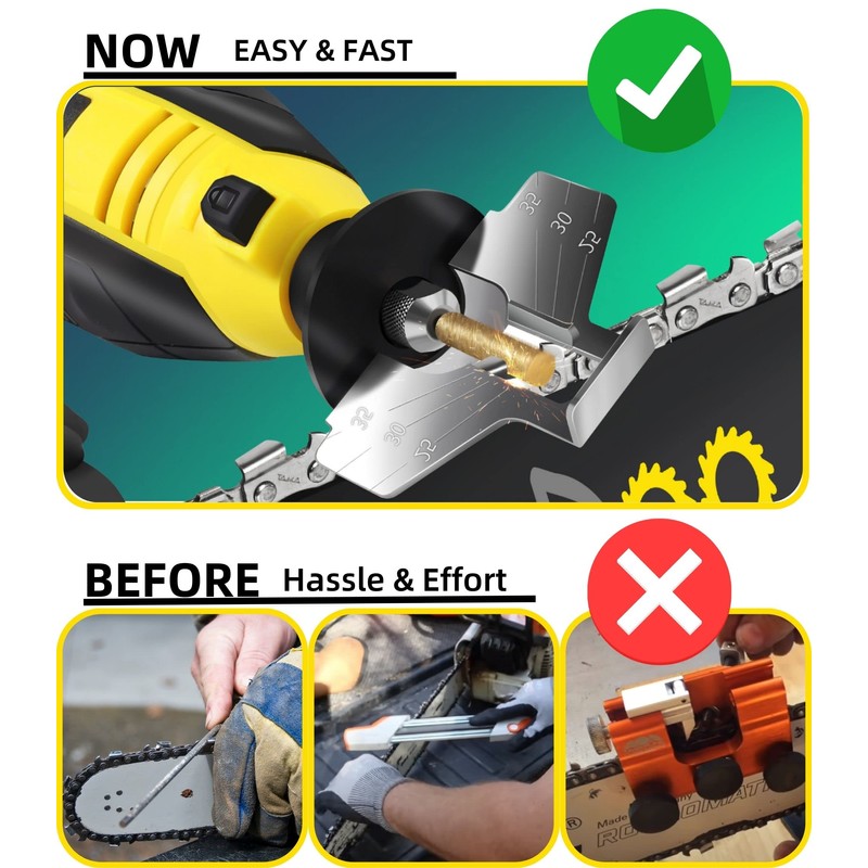 - Perfect Assistant This efficient chainsaw sharpener is the perfect companion for chainsaws. It sharpen the chain, protects the chain, makes work easier & safer than ever before. And the exquisite packaging makes it a unique and practical GIFT for father husband and logger. So, get it and you will find you are a cool working style leader!