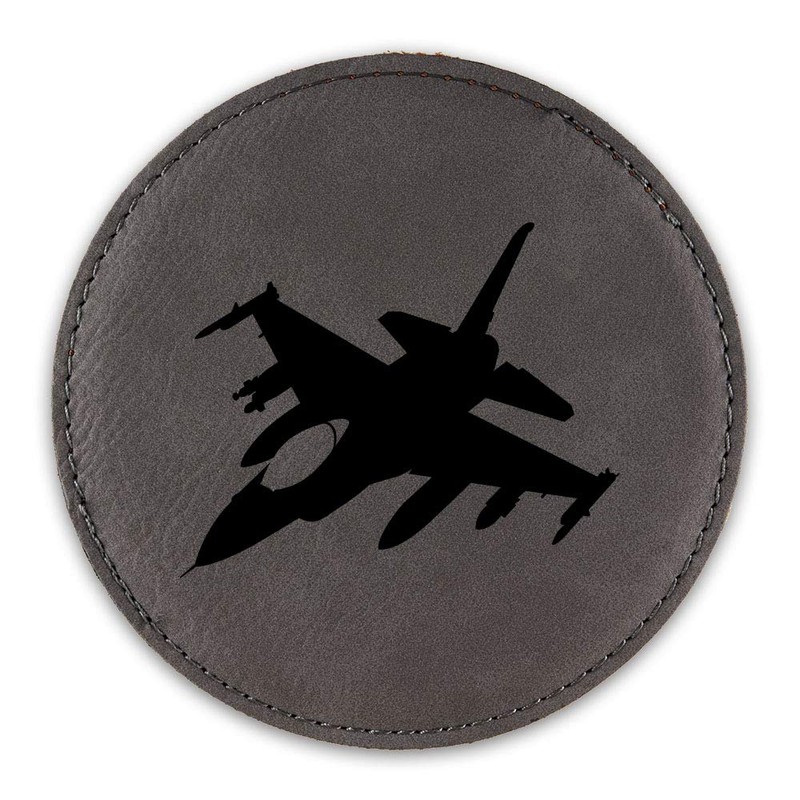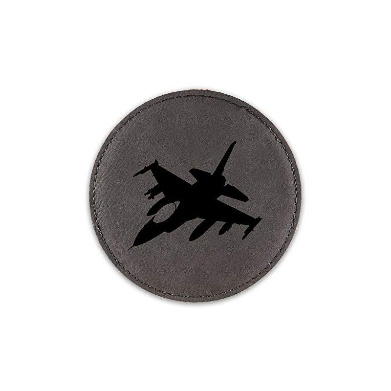 F-16 Fighting Falcon Drink Coaster Leatherette Round Coasters Fighter F16 - Grey - Set of Six Round Coasters