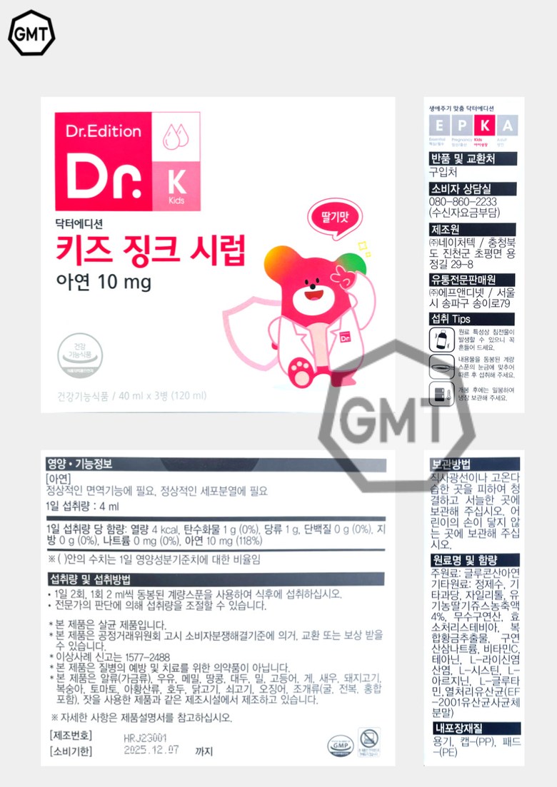 F&D Net Doctor Edition Kids Zinc Syrup Zinc 10mg 40mlx3 bottles [30 days supply], 1 unit, 120ml / 에프앤디넷 닥터에디션 키즈 징크 시럽 아연 10mg 40mlx3병 [30일분], 1개, 120ml