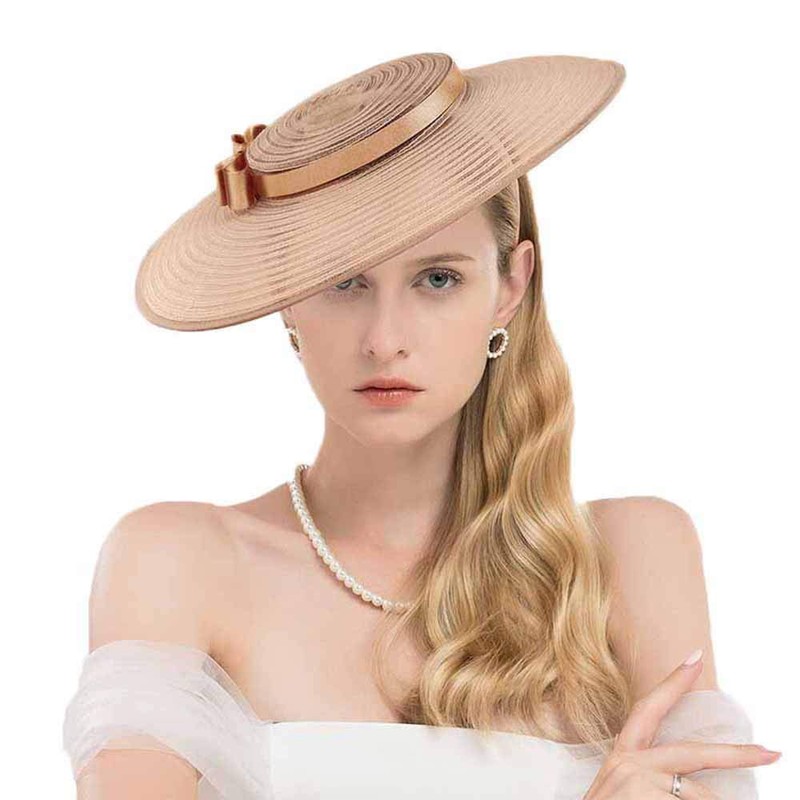 F FADVES Fascinators for Women Elegant Wide Brim Tea Party Church Wedding Hat Light Brown