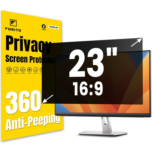- 【Upgraded 360°anti-peeping film】 With its innovative 360° privacy design, F FORITO 23 inch computer privacy screen offers unparalleled protection for your personal information. By effectively restricting the viewing angle to only the user in front, it prevents unauthorized individuals from seeing your display from the sides or behind