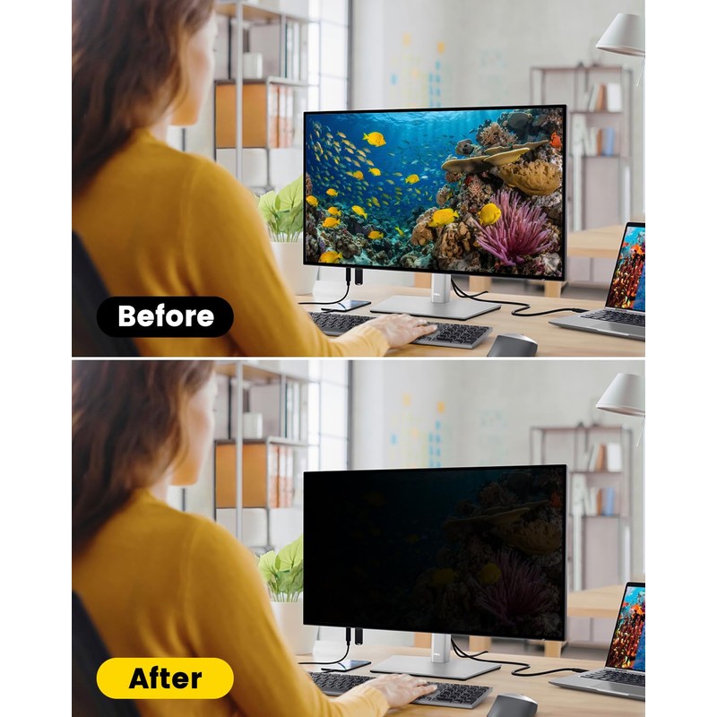 - 【Prioritize Eye Health】 This 23 inch privacy screen for monitor protects your eyes with anti-glare and anti-blue light technology. It reduces eye fatigue, minimizes discomfort, and prevents headaches caused by blue light and glare. Enjoy extended screen time without worrying about eye strain