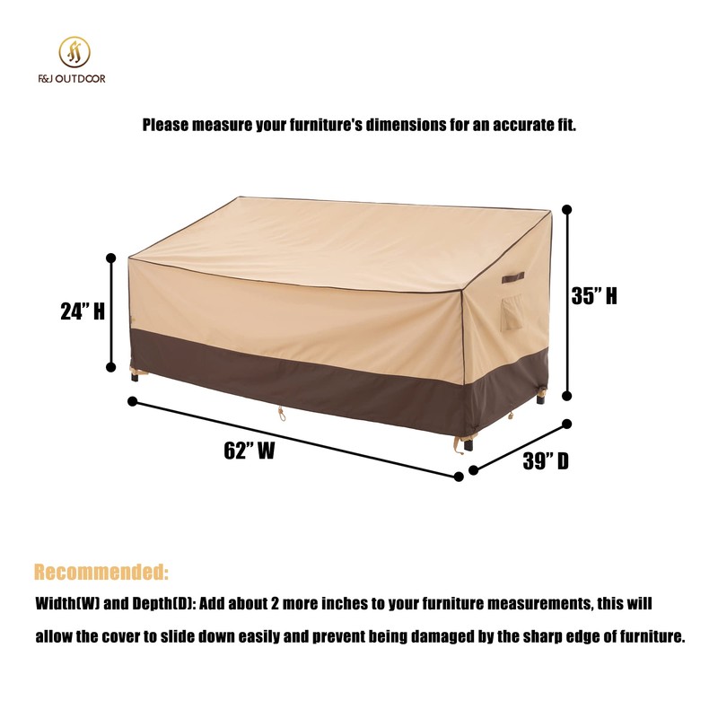 - 62" x 39" x 24"/35" Deep Seat Patio Loveseat Cover fits 2 seater deep seat loveseat, two seat depths are available, please measure the dimensions of your furniture carefully before purchasing.