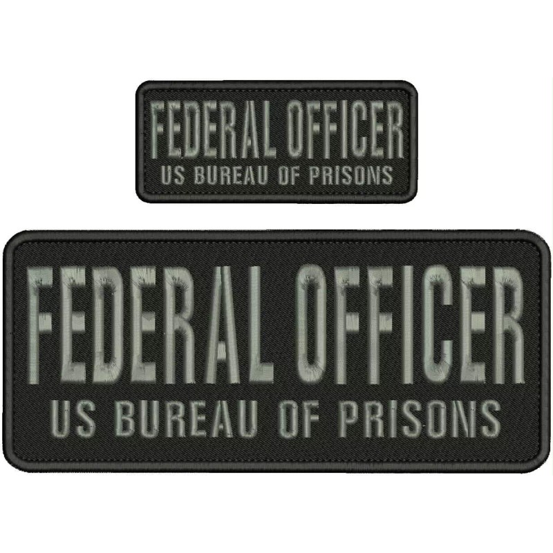 F OFFICER US BUREAU OF P EMBROIDERY PATCH 4X10 AND 2X5 HOOK ON BACK BLACK/GRAY