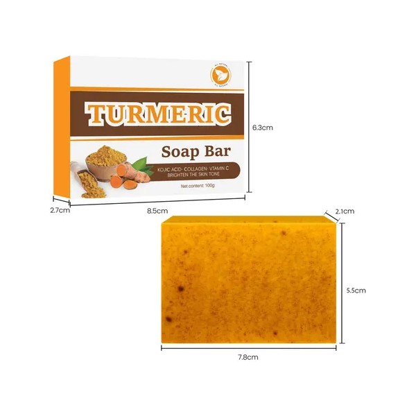 Jabón de cúrcuma iluminador: enriquecido con cúrcuma en polvo, este jabón de cúrcuma natural limpia a fondo las impurezas de la piel, aclarando gradualmente la piel irregular y dejando