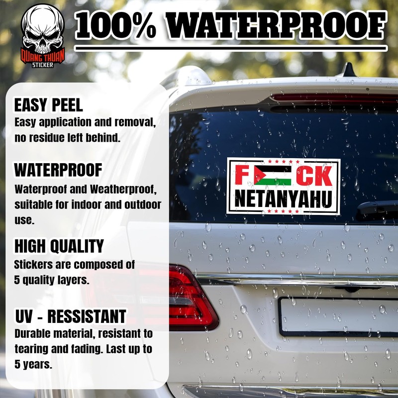 F.uck Netanyahu | Bumper Sticker or Car Magnet | Anti Benjamin Netanyahu Decorations for Cars [7.5x3.75]