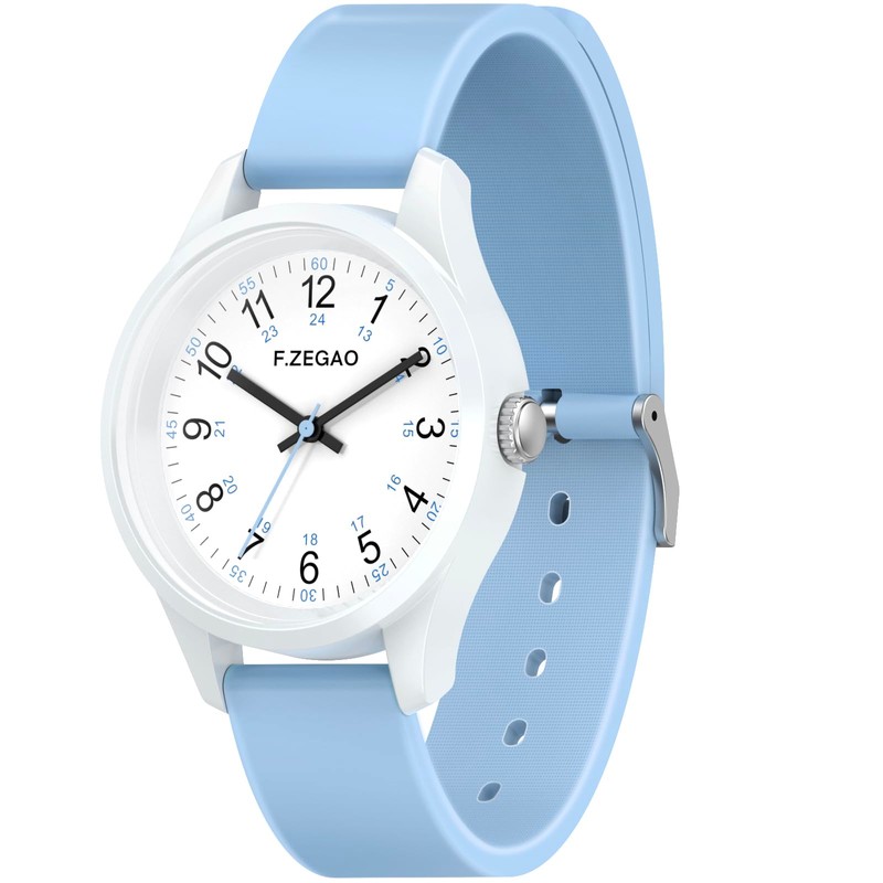 F.ZEGAO - Relojes para mujer, 100 m, impermeables, para mujer, fácil de leer, con segunda mano, con banda de silicona suave y colorida para nadar/bucear, Azul, Analógico clásico
