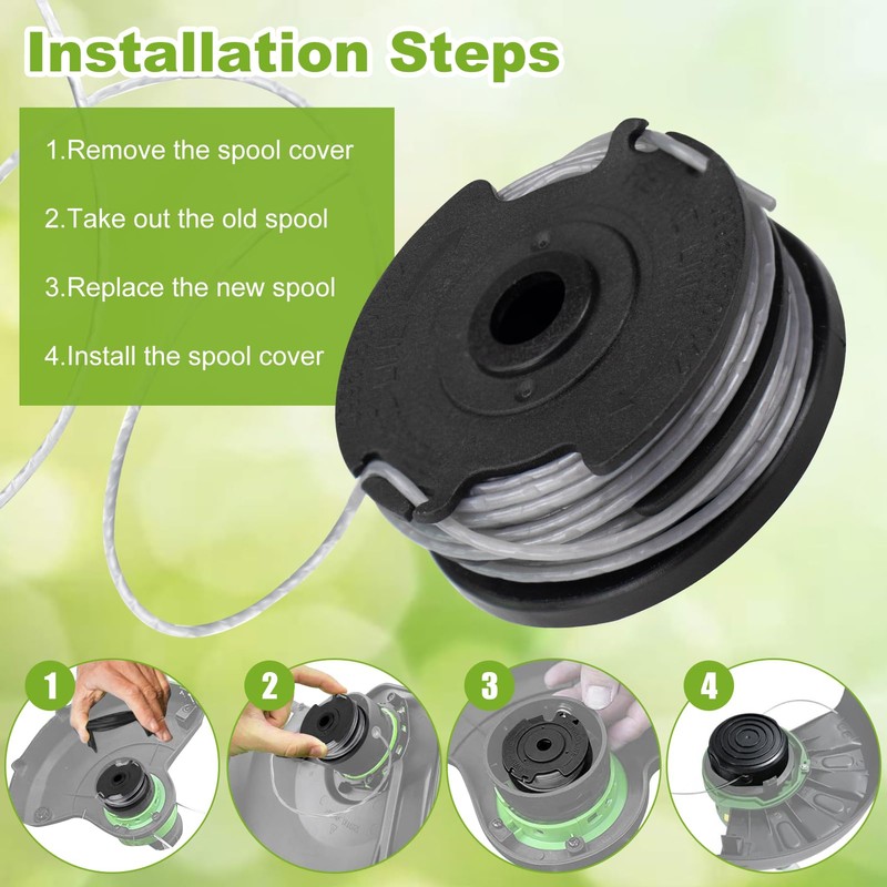 - HIGH QUALITY Made of a high quality ABS spool and durable nylon thread. Flexible and durable. The 6 m spool is flexible, the high-quality 1.6 mm diameter weeding wire easily cuts grass and weeds.