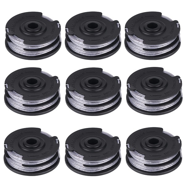 - Package includes: 9 x spools. Wear safety glasses and long trousers when using this product to avoid injury. For soft weeds only. For thick weeds, use a razor blade to cut.