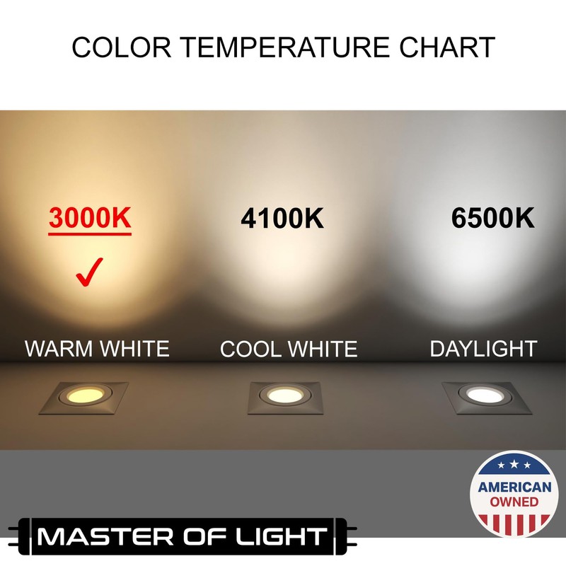 - 3000 Kelvin Warm White for Kitchen/Bath