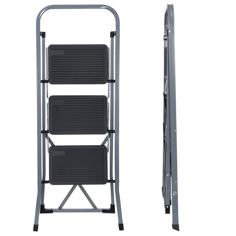 - Durability & Stability: Crafted from high-quality Q195 steel, our 3 step ladder features a triangular mechanical structure and a special locking rod to ensure it remains securely locked during use. This design not only enhances stability but also ensures your safety while climbing. With PE spraying technology, the ladder stool is built to withstand wear and tear, providing you with a long-lasting solution