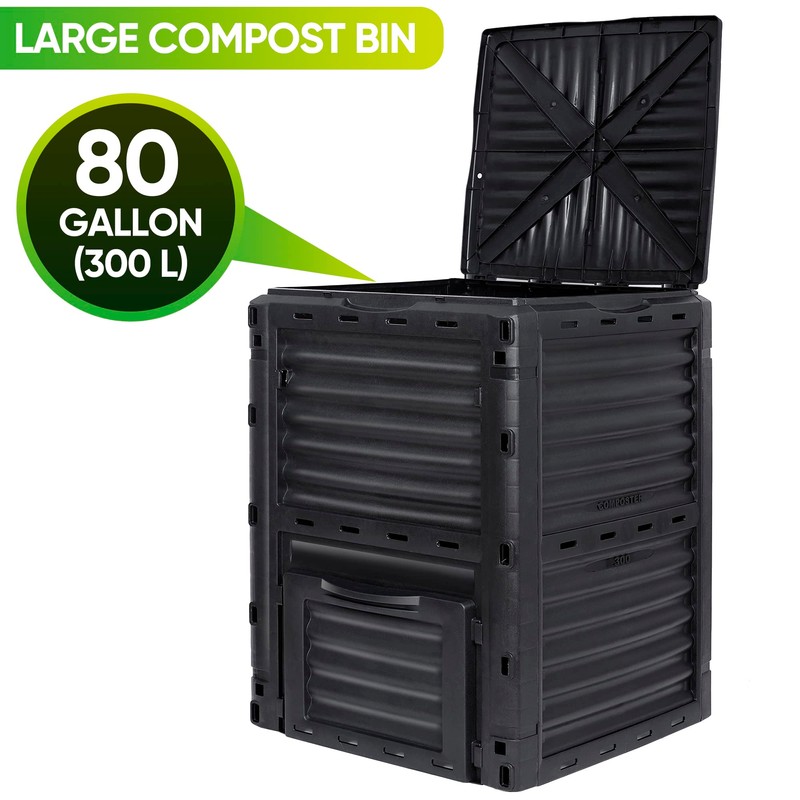 F2C F2C Garden Compost Bin from BPA Free Material -80 Gallon(300 L) Large Compost Bin Aerating Outdoor Compost Box Easy Assembling, Lightweight, Fast Creation of Fertile Soil, Black (Black, 80 Galoon)