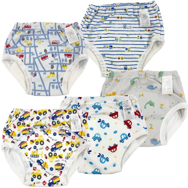 F4022E Baby Training Pants, 3 Layers, Boys 5 Pack, Vehicles, Dinosaurs, etc