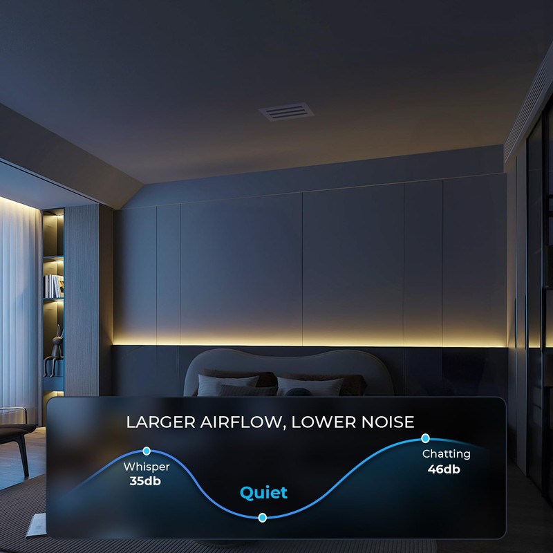 - Airflow adjustable in multiple modes; 90-degree airflow channel ensures maximum airflow while minimizing noise due to aerodynamic based structural design. Ideal for ceilings, walls, and floors in bathrooms, kitchens, and living rooms. Suitable for office essentials, new builds, home improvement, or remodels