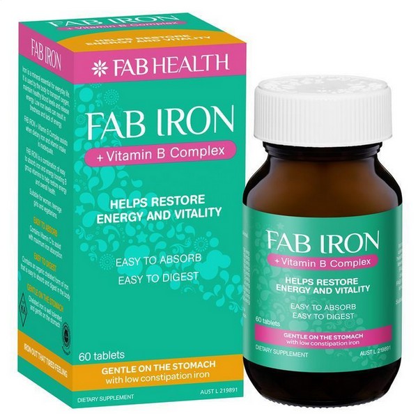 Iron is a mineral essential for everyday life. It is used by the body to transport oxygen, maintain healthy blood levels and release energy. Low iron levels can result in tiredness and lack of energy.Fab Iron + Vitamin B Complex assists when dietary iron and vitamin intake is inadequate.