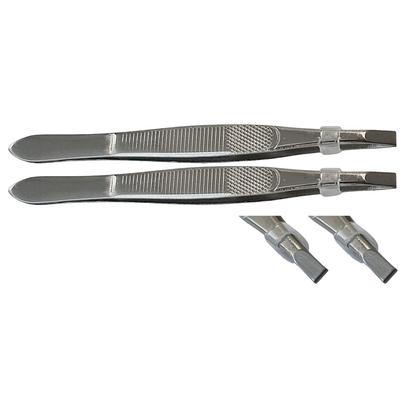 • HEALTH AND CARE These splinter tweezers, ideal for removing splinters, thorns, ticks from the skin, also an essential tool in every household. - Length of 9 cm - Stainless steel - Box contents: 2x stainless steel tweezers -