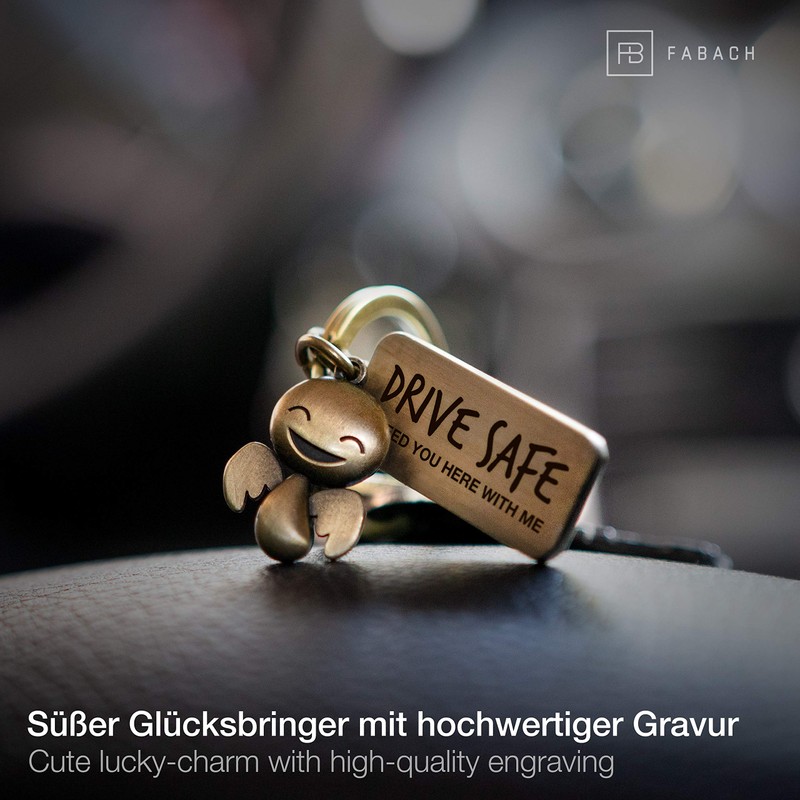 FABACH Happy Guardian Angel Keyring with Engraving - Cute Car Key Ring with Message Made of Metal for Drivers - Gift Lucky Charm Car Driving Licence - Drive Safe