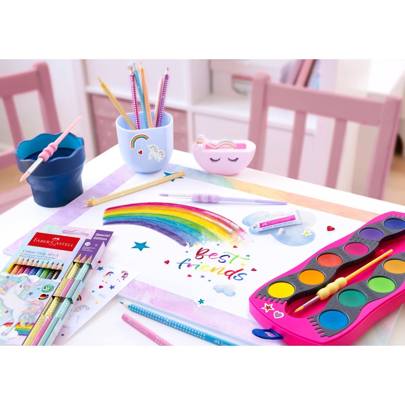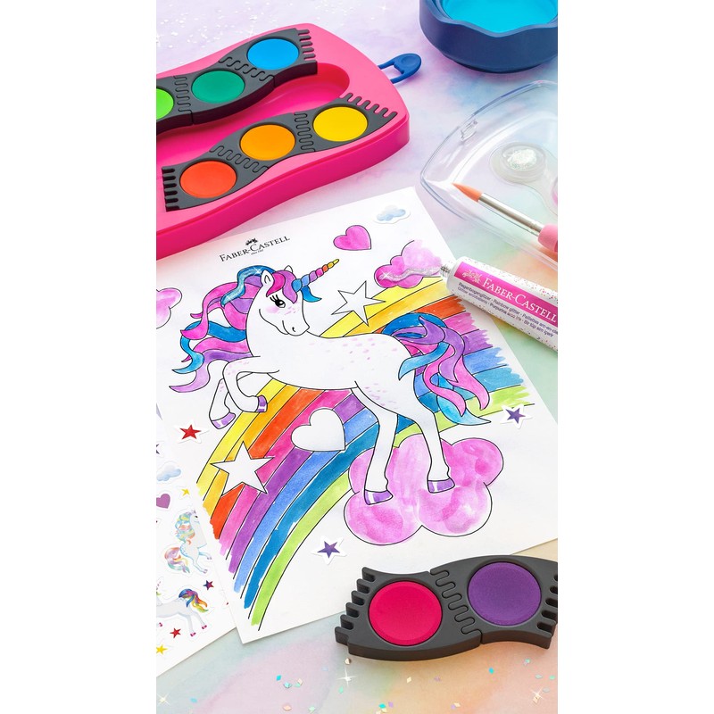 Faber-Castell 125002 Unicorn Edition Connector Watercolour Box with 12 Paints Including Rainbow Glitter Tube