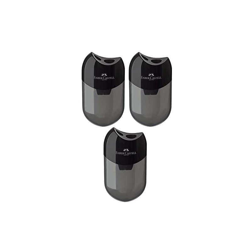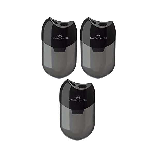 Faber-Castell - 183500 - Double Sharpener - Housing Colour: Black/Transparent (3 Sharpeners)