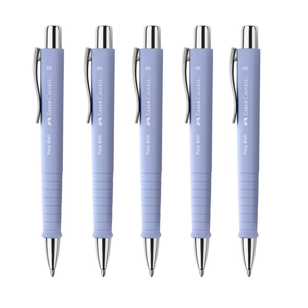 Faber-Castell 205271 Poly Ball Pale Iris Ballpoint Pen, Pack of 5, with Replaceable XB Refill, Indelible