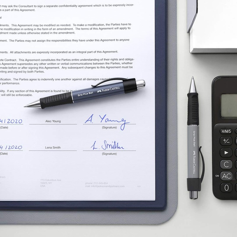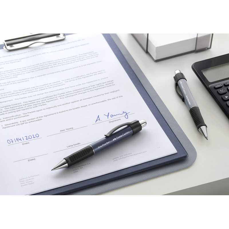 The Faber-Castell Grip Plus Ball M ballpoint pen is equipped with a practical push mechanism. Refill type: Special: 140710; 140711. The lead has a width of 0.5 mm and the ink colour blue, the ink is indelible. The standard large-capacity refill in the thickness M is replaceable. With ergonomic triangular rubber grip and plastic clip. The ballpoint pen with spring-loaded refill is suitable for checks, certificates and contracts. Thanks to its ergonomic rubber grip zone, the mechanical pencil and ballpoint pen Grip Plus ensures long, fatigue-free writing. As one of the oldest family-run industrial companies in the world, Faber-Castell is one of the leading manufacturers and marketers of high-quality writing, painting and creative design products. The company owes its position to its traditional commitment to the highest quality and the large number of product innovations and improvements. According to a scientific study by TÜV Rheinland in 2015, Faber-Castell is the world's first company in the industry to be completely climate-neutral, thus making a real contribution to climate protection.