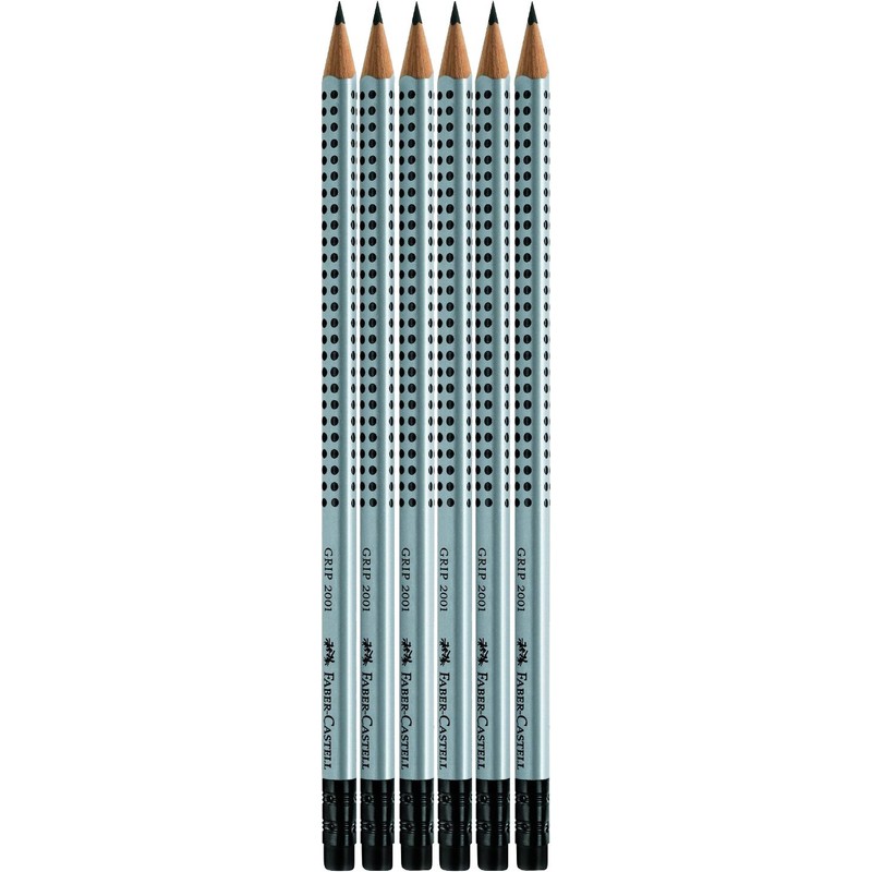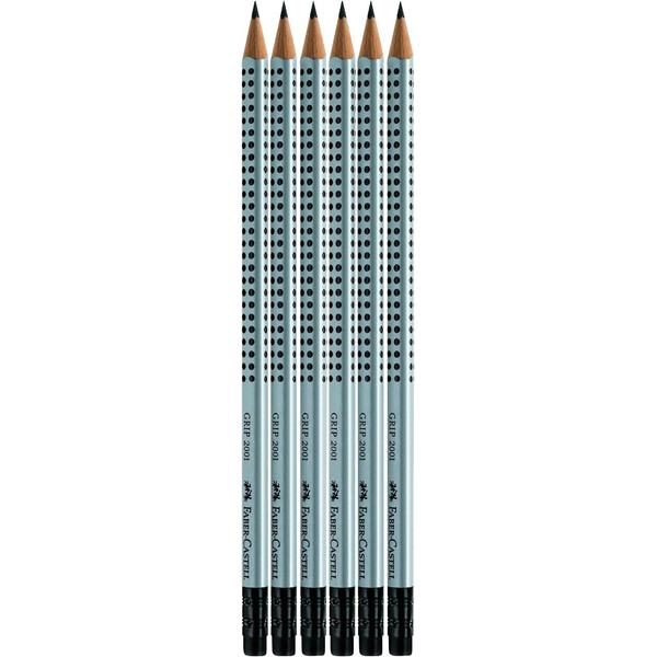 Faber-Castell GRIP 2001 117298 Pencils with Rubber End HB Silver Shaft Pack of 6