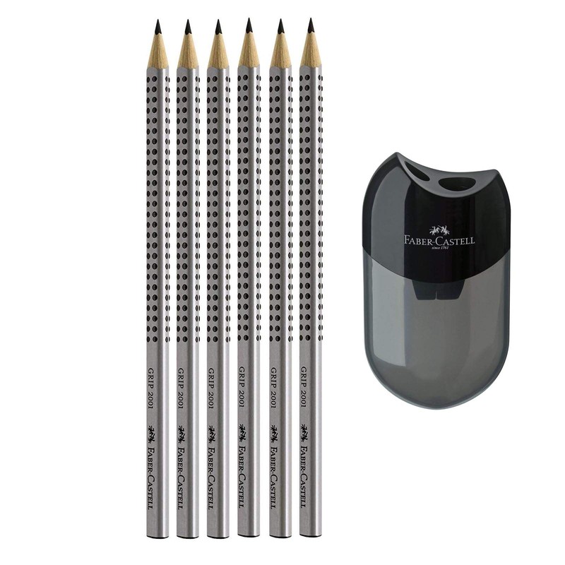 Faber-Castell Grip 2001 Pencil 2B Set of 6 with Double Sharpener