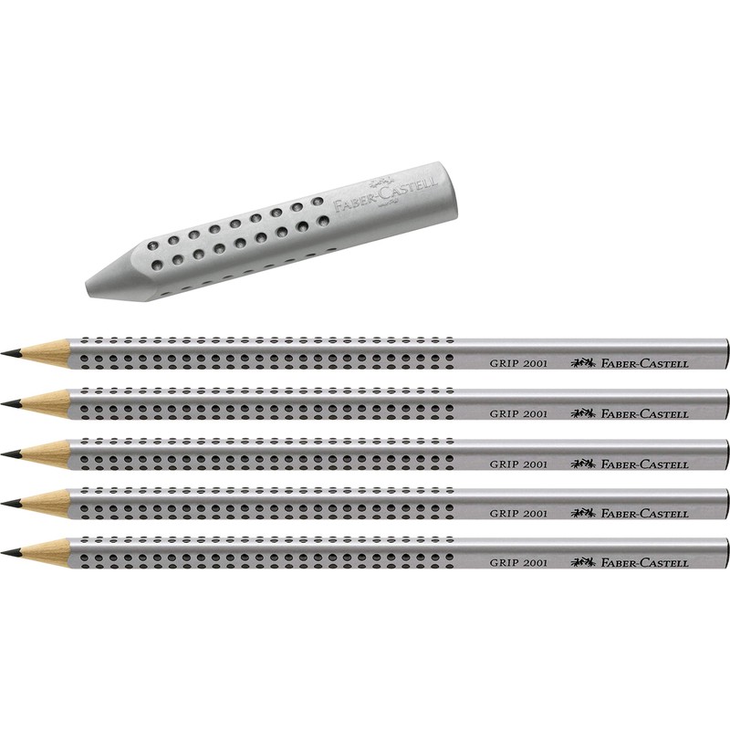 - Faber-Castell Triangular Grip 2001 Eraser, No Colour Choice, Eraser + 5 HB Pencils