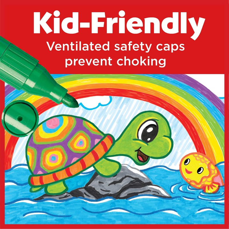 - Durable markers - broad, durable tips are great for bold strokes of color and can sustain heavy pressure when coloring. Perfect for adding colors to posters or large artwork!