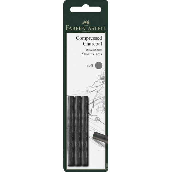 Faber-Castell Pack of 3 Compressed PITT Charcoal Sticks, Intensive Black, Soft