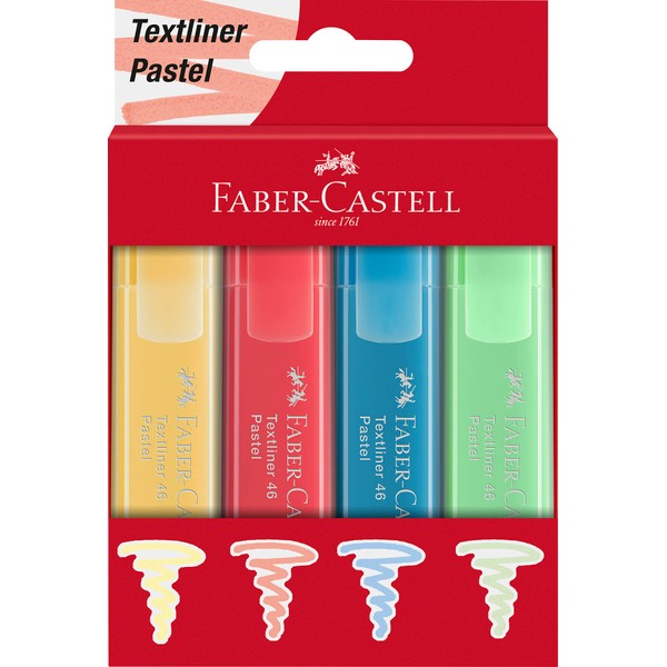 Faber-Castell Textliner 46 Pastel Highlighter Pens - Box of 4, 254624