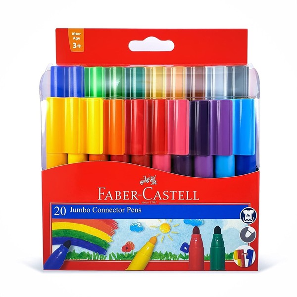- Content: This pack includes 20 Faber-Castell Jumbo Connector Pen Colour Markers in a durable wallet for easy storage