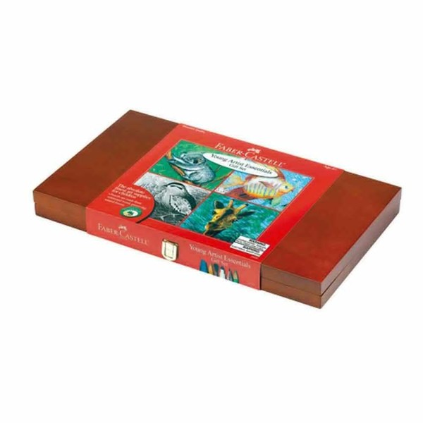 Experience the joy of creative expression with premium Faber-Castell art materials. This beautiful wood box gift set is designed to delight and inspire young artists. This premium quality set includes a 64-piece assortment of Faber-Castell drawing components. The set includes 24 Colored EcoPencils, 8 Watercolor EcoPencils, 2 Grip Graphite EcoPencils, 18 oil pastels, 12 washable Duo tip markers, a sharpener, paint brush, high quality artist paper and a 4-color illustration book in a wood gift box with velvet storage trays.