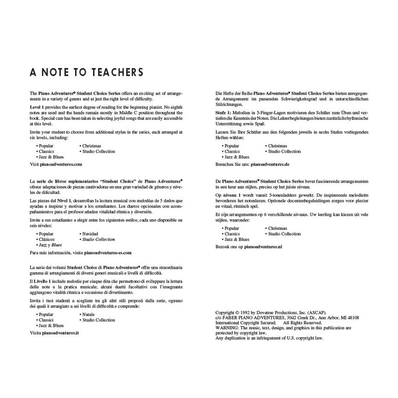 Faber Piano Adventures - Student Choice Series: Jazz & Blues Level 1