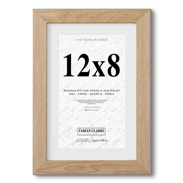 Fabian Clarke London® 12x8 Modern Oak Wooden Picture Photo Frame with White 10x6 Mount to Hang Portrait or Landscape
