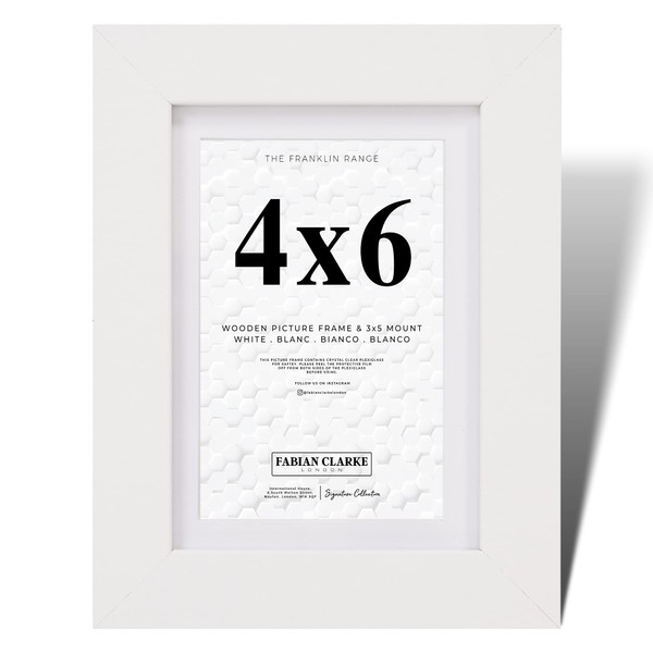 Fabian Clarke London® 6x4 Modern White Wooden Picture Photo Frame with White 5x3 Mount Includes Glass Front Hang Portrait or Landscape