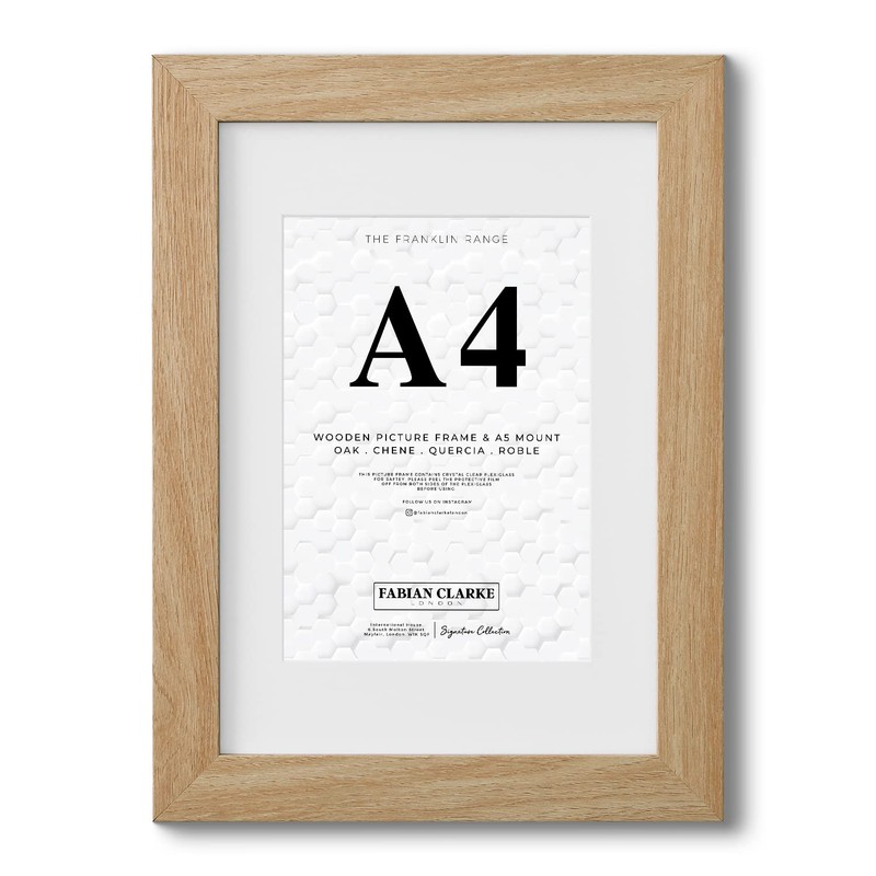 Fabian Clarke London® A4 Modern Oak Wooden Picture Photo Frame For Certificate or Noticeboard Poster with White A5 Mount to Hang Portrait or Landscape