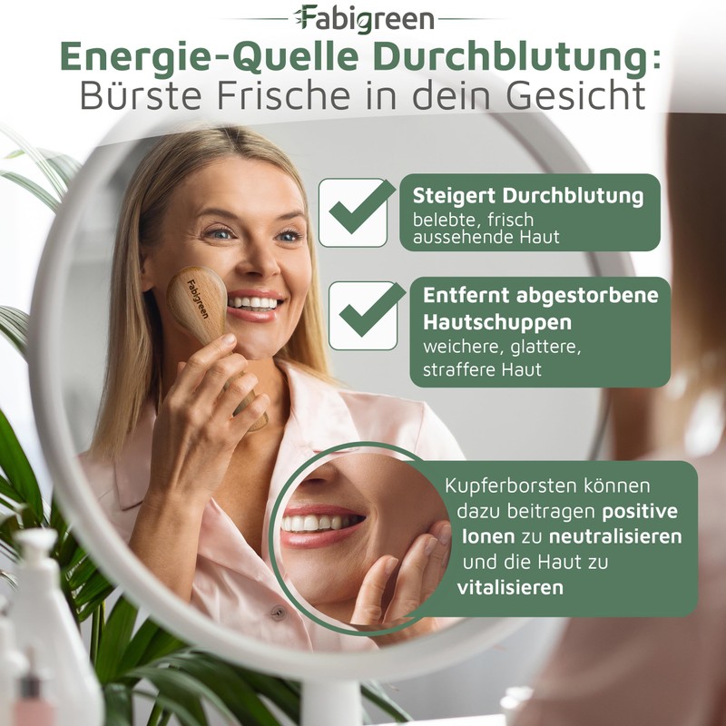 - Vitalised and radiant skin: the dry brush for face with ultra-fine copper bristles provides energy balance on the skin with negative ions, neutralises free radicals and counteracts premature skin ageing and inflammation. Brush your face with youthful freshness for the perfect start to the day.