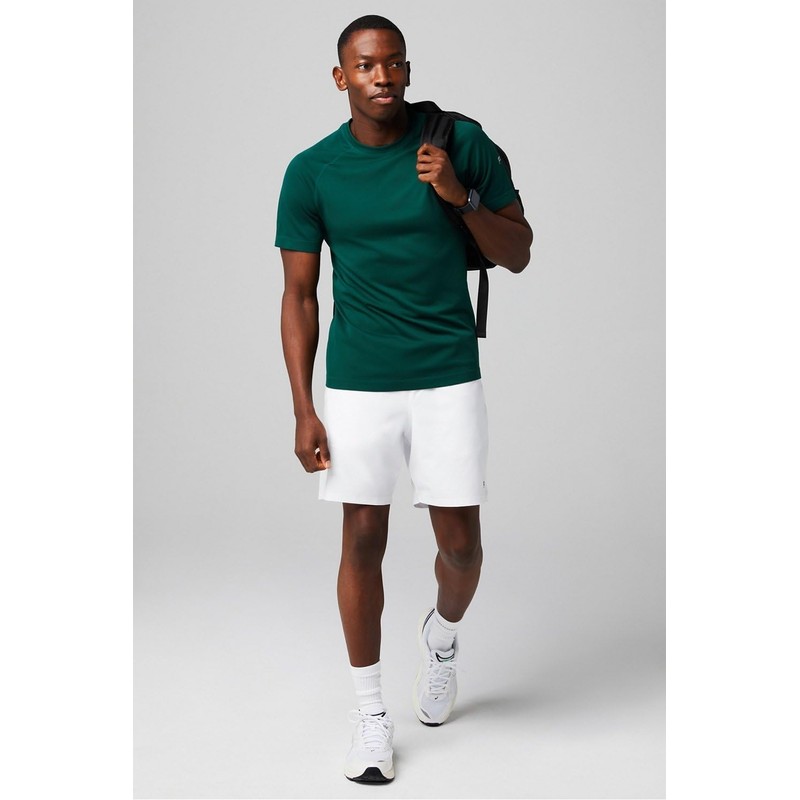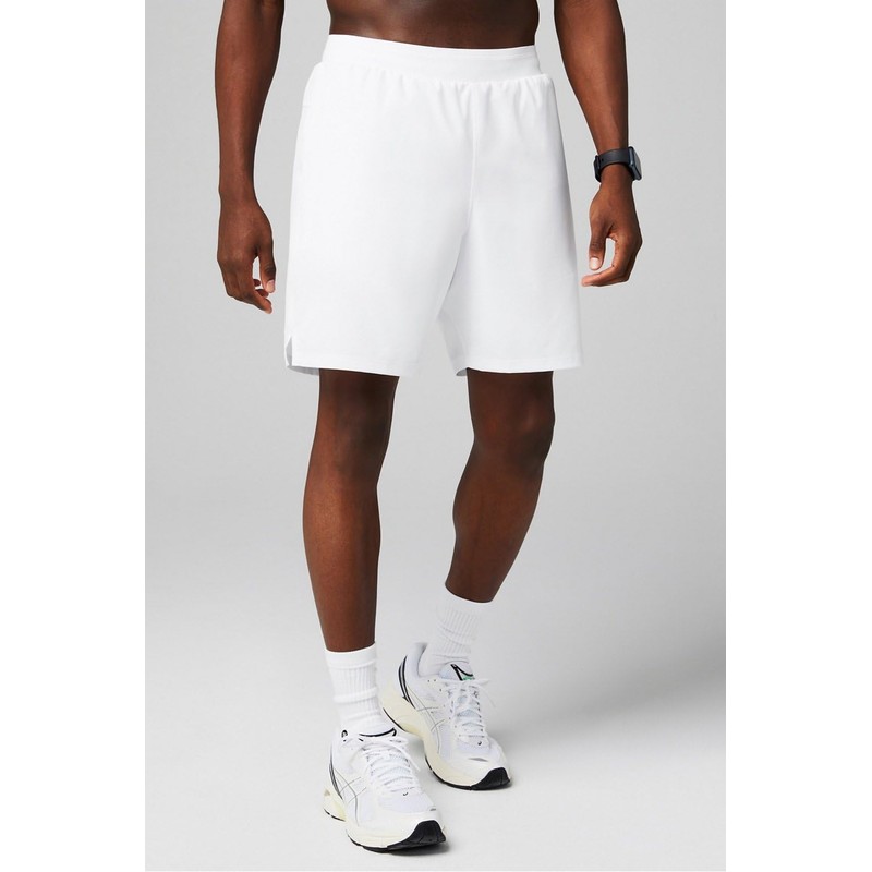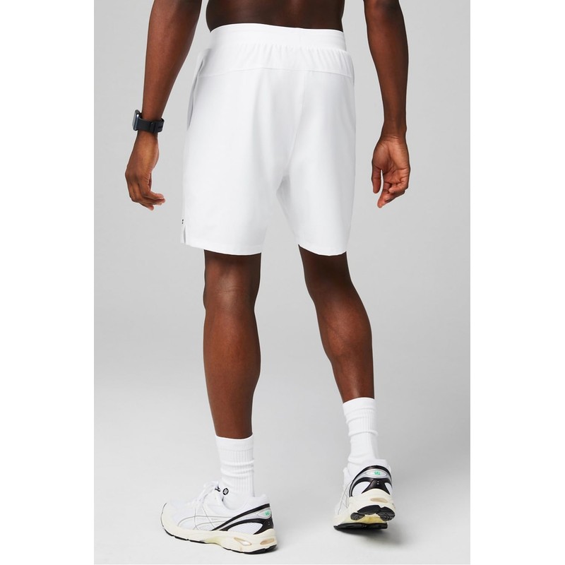 Fabletics Men's The Fundamental Short II (Lined), Workout, Running, Training, Gym, Yoga, Ultra Lightweight, 7" Inseam, L, Classic White