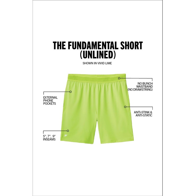 Fabletics Men's The Fundamental Short, Workout, Running, Training, Gym, Yoga, Ultra Lightweight, Athletic, 7" Inseam, XL, Vivid Lime