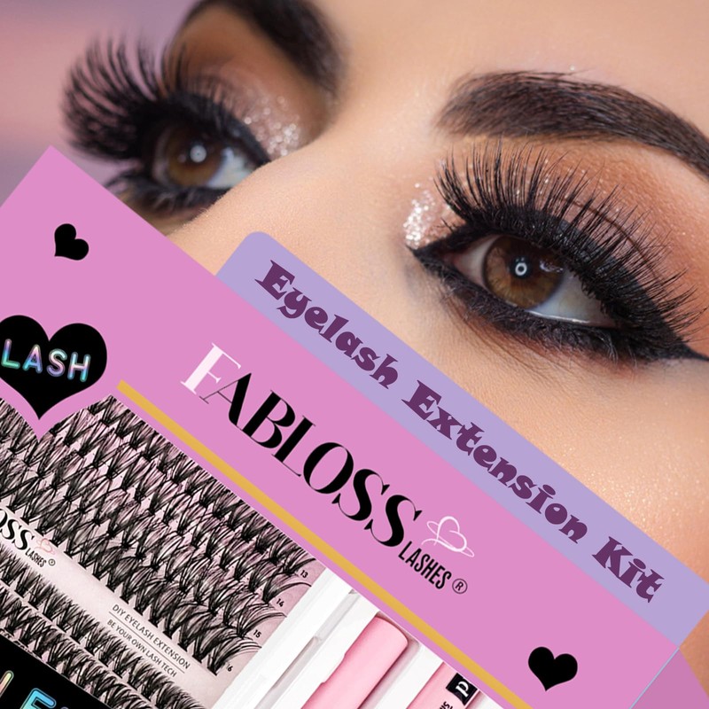 Fablosslashes Lash Extension Kit DIY 280Pcs Lash Clusters Eyelash Extension Kit 30D+40D Fluffy Lash Clusters Kit With Lash Bond And Seal, Lash Remover, Lash Tweezers(30D+40D, 9-16mm, Kit)